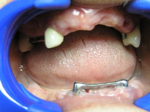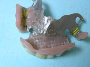 Preostali zubi su povezani prečkama a preko njih se spajaju proteze sa klizačima